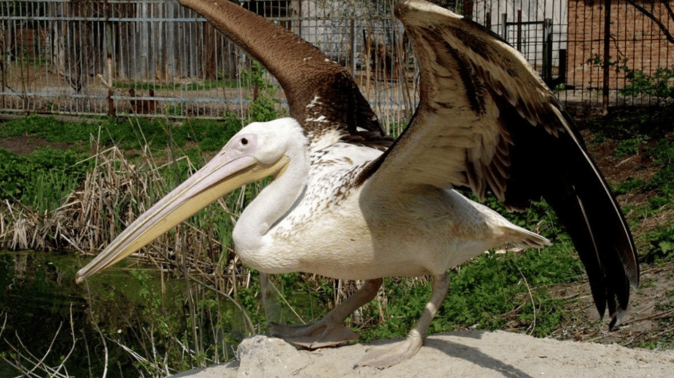 Ви бачите перед собою звичайну фотографію, на якій великий і гордий пелікан розправляє свої крила. Якщо ви подивитеся на фон цього знімку, то побачите, що дійство, найімовірніше, відбувається у зоопарку, адже цей птах перебуває за огородженням.