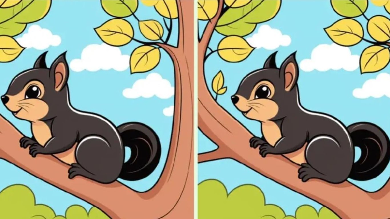 На малюнках зображена одна й та сама білочка. Знадобиться зібрати в кулак усю свою спостережливість, щоб знайти три малопомітні відмінності між картинками за 10 секунд.
