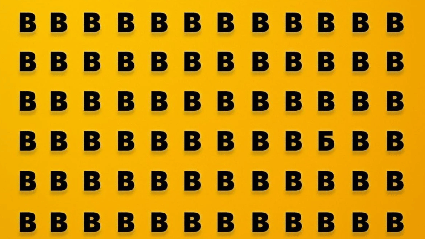 Перед вами представлена картинка, на якій зображена велика кількість літер "В", які повторюються у 12 стовпчиків. Здавалося б, нічого іншого там немає, але це далеко не так, адже на зображені захована літера "Б".