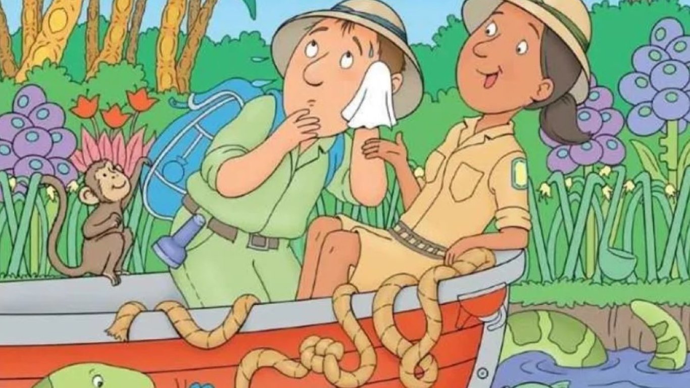 Пара мандрівників пливе на човні тропічною річкою. Ви можете бути людиною з ідеальною увагою та гострим розумом, якщо розгадаєте цю оптичну ілюзію.