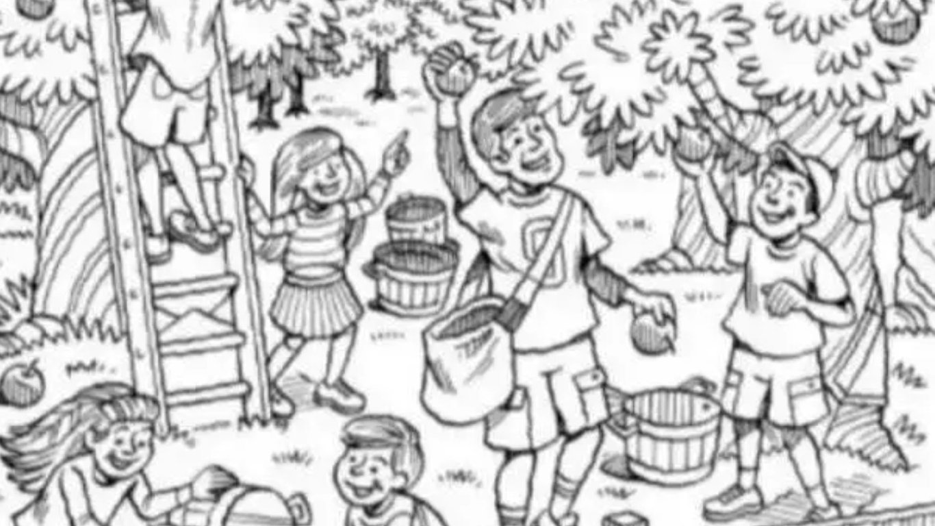 Родина збирає врожай у саду — лише люди з височенним IQ знайдуть на малюнку рибу