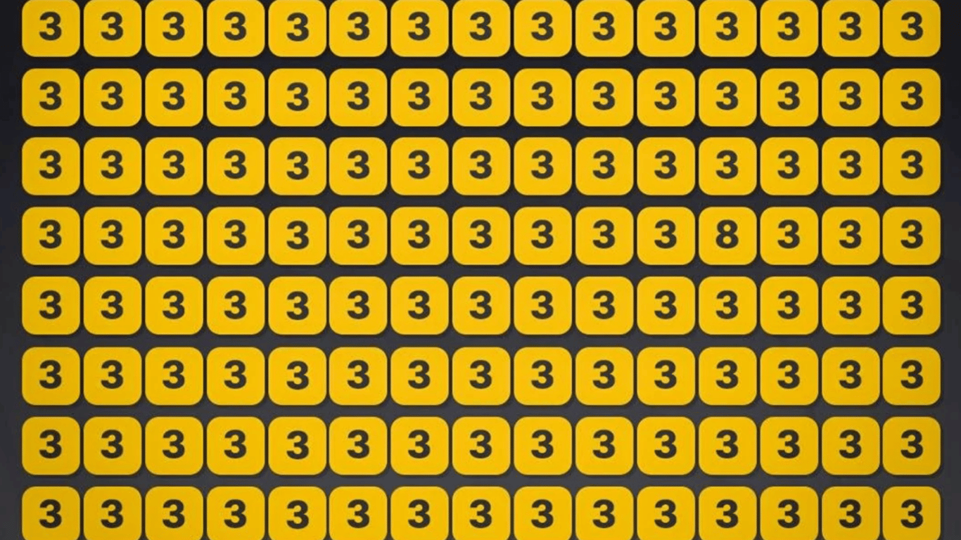 Сделать вам это нужно за короткий промежуток времени, а именно — всего за семь секунд. Если вам кажется, что невозможно найти восьмерку из-за того, что она сливается с тройками на картинке, это не так. Всего лишь попытайтесь тщательно посмотреть на изображение.