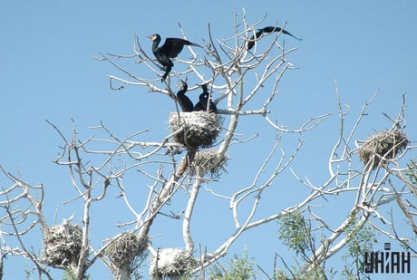 Перед собой вы можете увидеть обычную фотографию, на которой есть необычное дерево. На этом дереве сидит несколько бакланов — один расположился на ветке, еще несколько сидят в гнезде, а вот одна птица решила улететь куда-то.