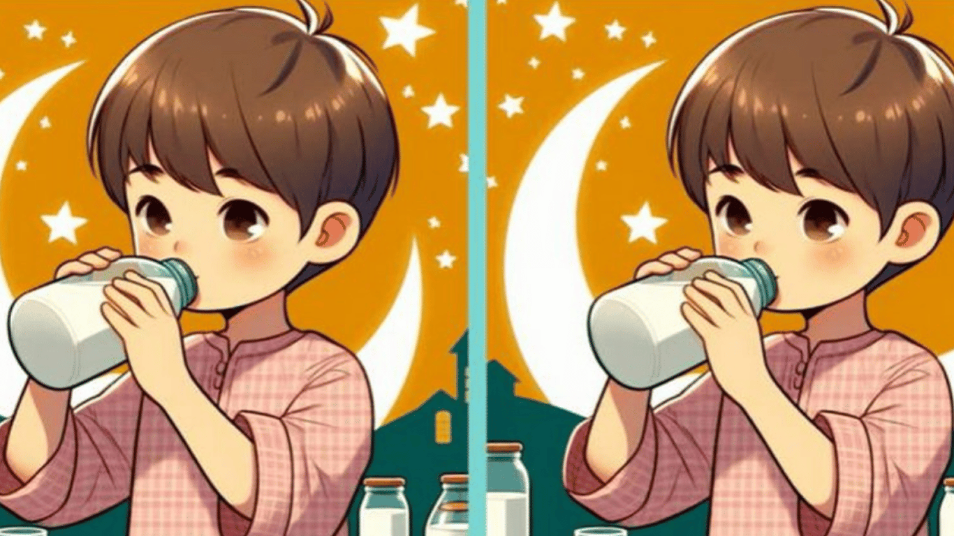 Маленький мальчик пьет молоко перед сном — найдите 3 отличия