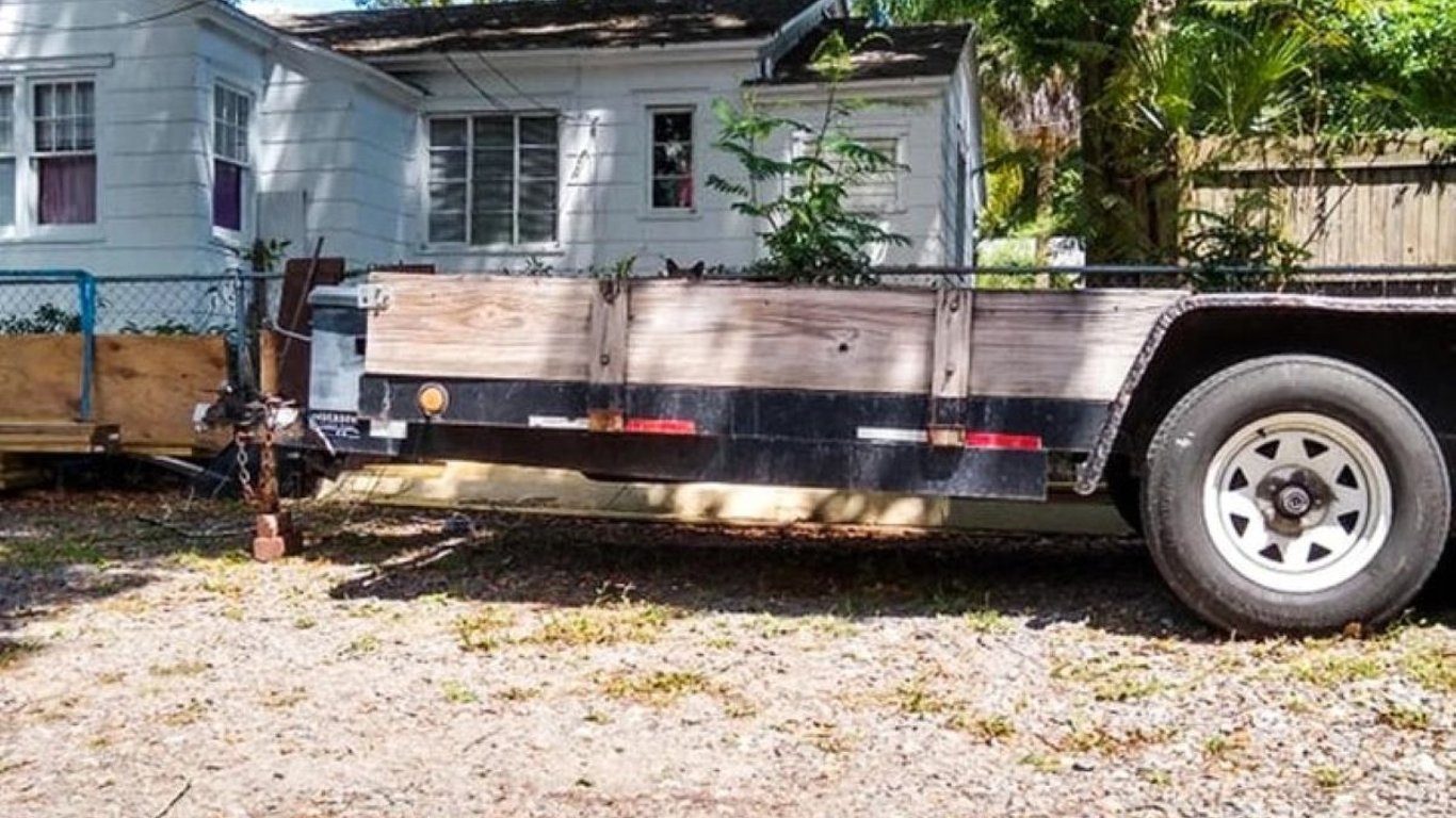 Классический дом американской глубинки, прицеп, большое дерево и куча мелких элементов. Где-то там прячется кот, его видно — только нужно сосредоточиться.