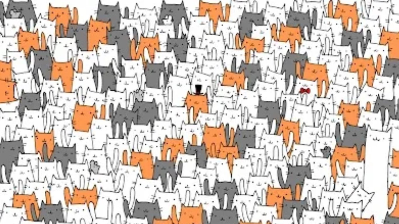 Ця оптична ілюзія заплутує зір додатковими аксесуарами на деяких котах. Наприклад, на одному з них є чорний капелюх, на іншому — рожевий бант. Є навіть нахабні маленькі мишки.