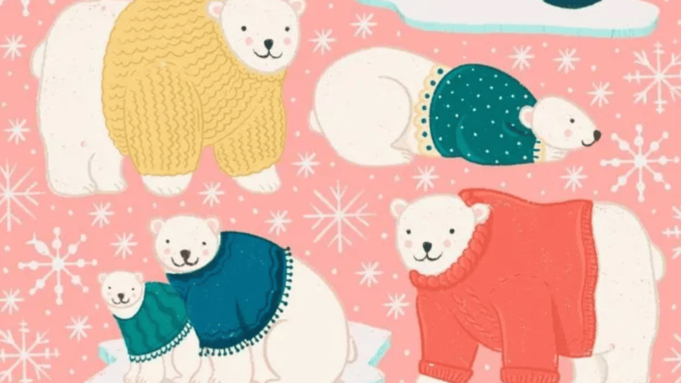 Якщо ви не змогли знайти рибу на зображенні, вам варто подивитися уважно на нижню частину картинки. Риба нанесена на одну зі сніжинок і розташована біля двох ведмедів у синьому та зеленому светрах, які стоять на рештці льодовику.