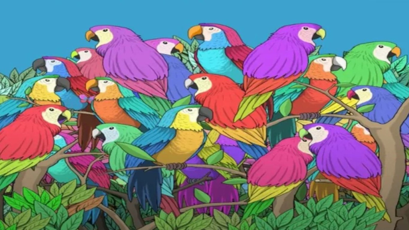 Кольорова оптична ілюзія із зображенням яскравого тропічного лісу спантеличила користувачів соціальних мереж. Чи зможете ви знайти метелика, захованого серед різноколірних папуг, за 10 секунд?